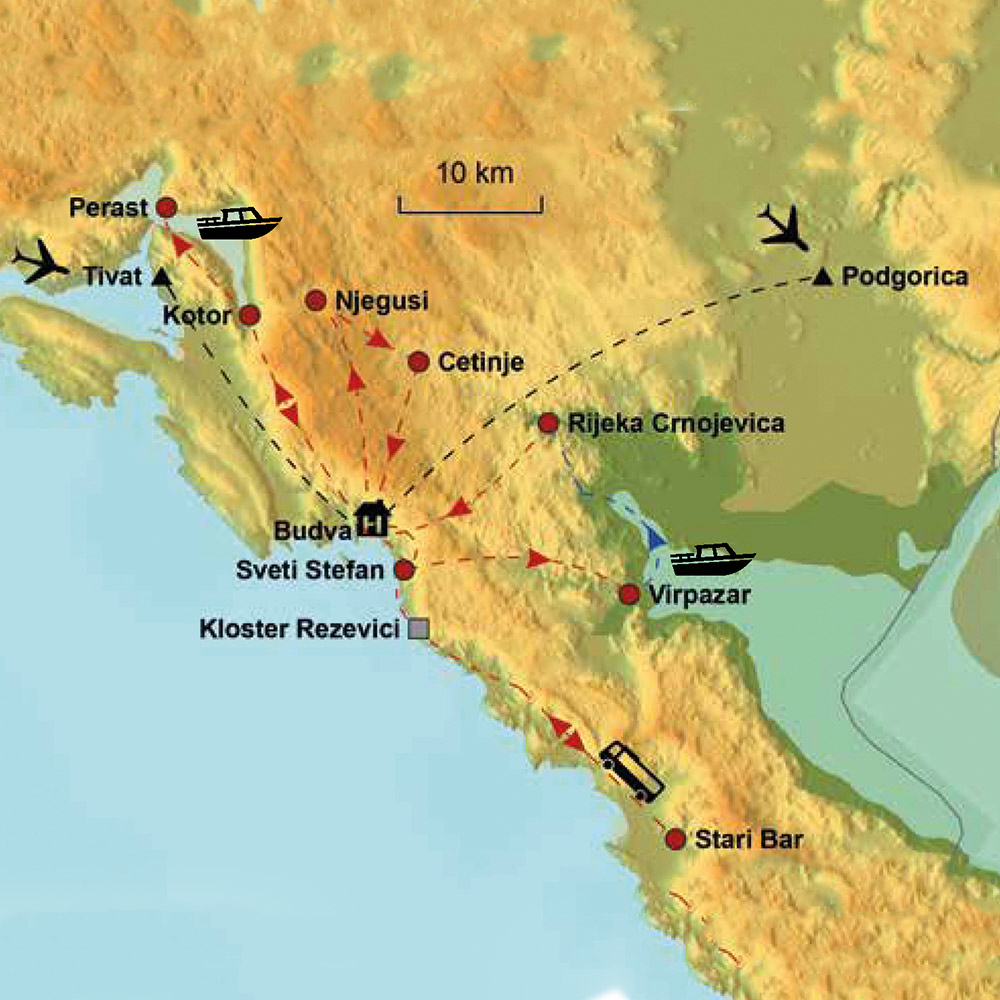 • Flüge: Deutschland nach Podgorica oder Tivat und zurück nach Deutschland, Via-Flüge möglich
