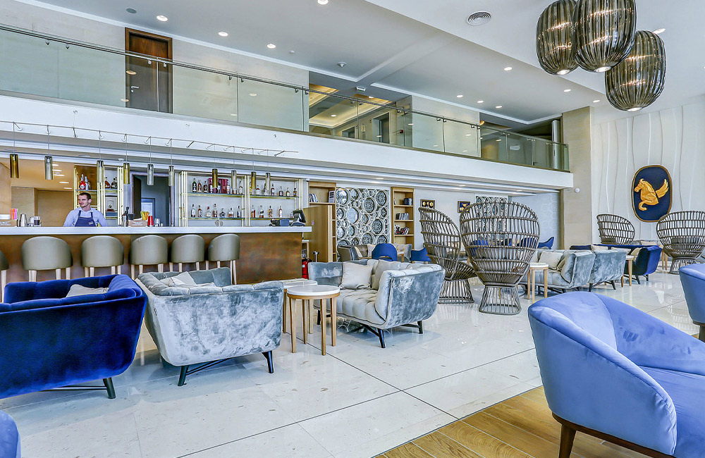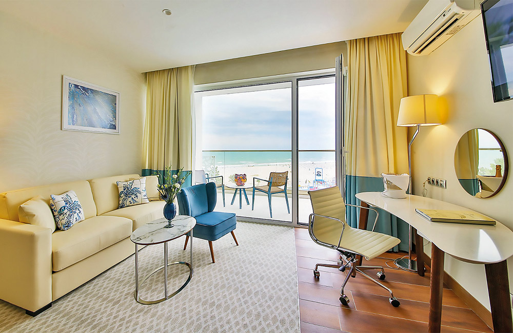 Es bietet eine erstklassige Lage direkt am Strand und beeindruckende Ausblicke auf das Meer. Das Hotel zeichnet sich durch moderne Architektur und stilvolles Design aus und bietet eine Vielzahl von Annehmlichkeiten, darunter komfortable Deluxe-Zimmer mit Sofa, Balkon und Meerblick, einen großen Wellnessbereich sowie Innen- und Außenpools. -